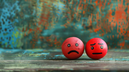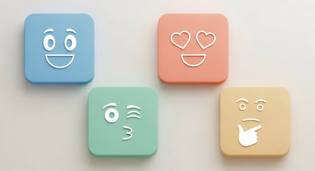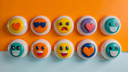 A striking arrangement of emoticons featuring diverse expressions and symbols, set on a soft-colored background that emphasizes the minimalist design