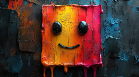 Melted crayon texture sticky-note emoji with vibrant colors dripping down, artistic messy style --no text,letters,logo