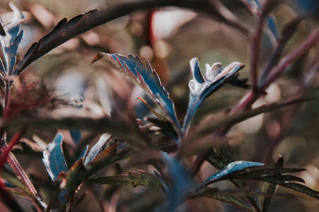 Trendy background color ultra violet foliage concept of the year. Ultraviolet abstract backdrop.