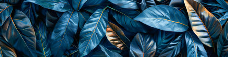 Exotic Midnight Blue Tropical Leaves with Subtle Orange Highlights.