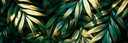 Vibrant tropical rainforest foliage with bold colors and sparkling textures