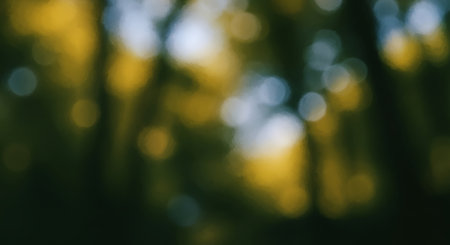 Lush green forest with blurred trees creating a tranquil atmosphere during a sunny day in autumn