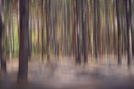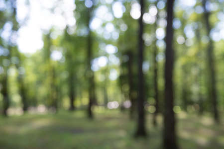 Forest as a blurred background. Defocus abstract natural background with trees.
