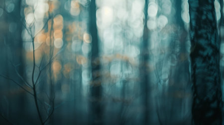 Blurry autumnal forest landscape. Beautiful abstract of polish forest at autumn. Nature defocused background