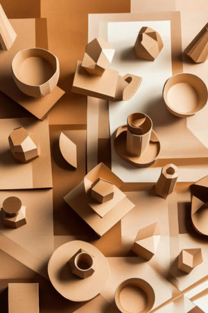 AI Generated. Abstract Wooden Shapes on Beige Background