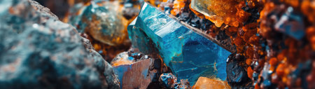 Close-up of vibrant blue crystals texture. Macro photography for design and wallpaper. Geology and mineralogy concept with copy space.