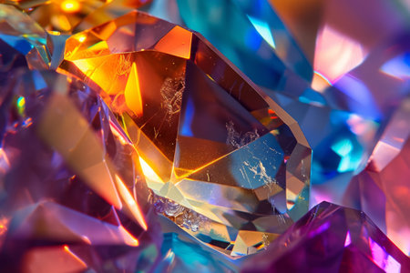 Close-up of a cluster of luminous crystals, showing their intricate facets and vibrant colors. A captivating display of natural beauty.