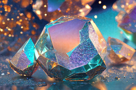 Shiny gemstones diamonds crystals abstract background. Beautiful luxury wallpaper. Digital art.