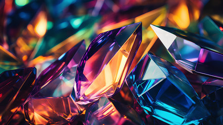 Glass crystals and prisms with color spectrum rays. Abstract optic effects background. Digital art.