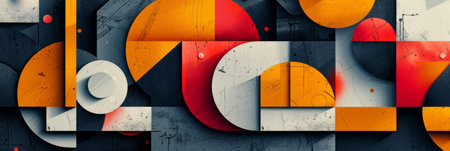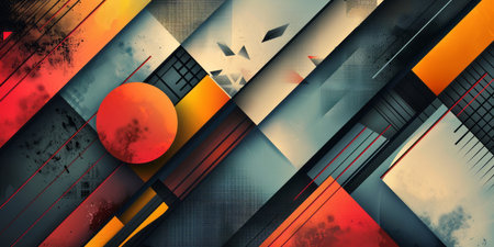 Vibrant abstract design with geometric lines and bold colors highlighting modern art