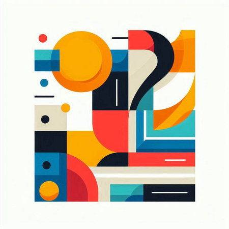 A close-up view of a modern abstract design with geometric shapes and vibrant colors