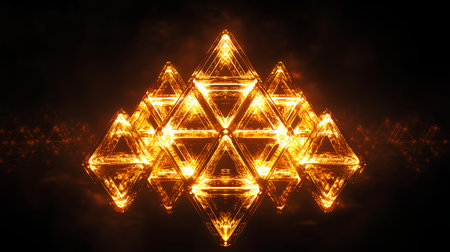 3d illustration of abstract geometric shape made of glowing triangles on dark background