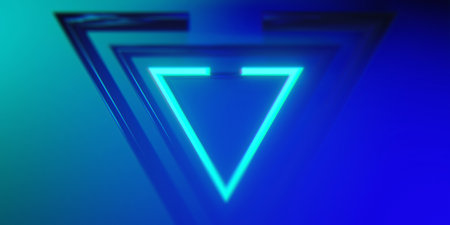 Glowing neon triangle shape abstract background. 3D Rendering.