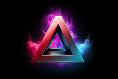 A striking neon triangle glows brightly above a swirling mass of colorful smoke. The scene is set in a dark environment, creating a captivating and mysterious ambiance.