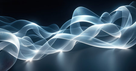 Abstract glowing white ribbons flowing against a deep void, creating a stunning contrast of light and dark, with smooth curves and dynamic movement