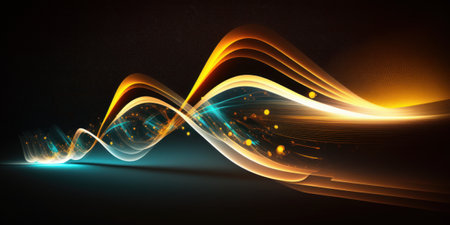 Luminous Gold Abstract Waves Effect with Light Trails in Dark Digital Space for Background Design