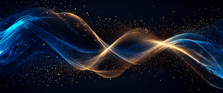 Abstract golden and blue particles flowing and forming a futuristic technology background
