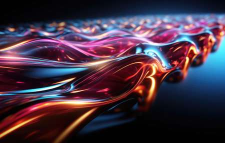 Abstract glowing ocean waves with vibrant colors and bokeh