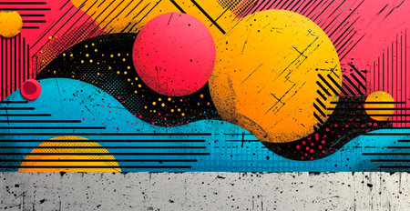 Bold geometric patterns and neon accents create a vibrant visual experience
