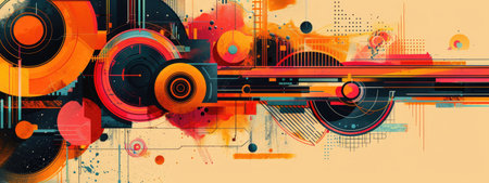 Colorful Abstract Geometric Art with Circles and Lines on Beige Background