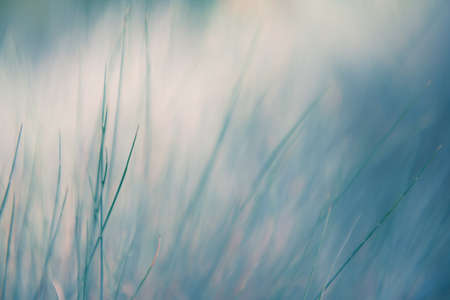 blue grass close up on blurred bokeh background with place for text