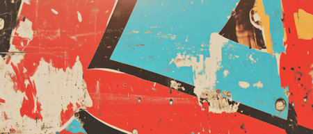 Colorful Abstract Urban Art with Torn Posters and Graffiti Layers on Wall