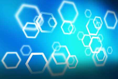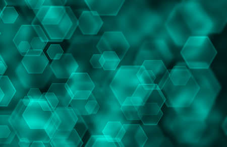 Bokeh abstract blue techno background with hexagons