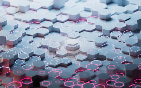 Hexagonal scientific and technological materials, 3d rendering. Computer digital drawing.