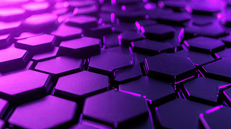 An artistic representation of an abstract hexagonal pattern featuring glossy purple surfaces, creating a vibrant and captivating visual experience. Ideal for modern design themes.