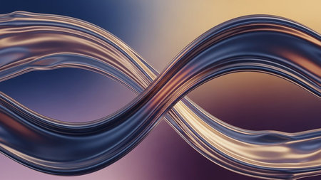 An abstract infinity symbol crafted from flowing metallic liquid, set against a smooth gradient background of purple, blue, and gold.
