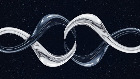 Two fluid, intertwined ribbons, one silver and one black, form an infinity symbol against a dark, starry background, suggesting connection and contrast.