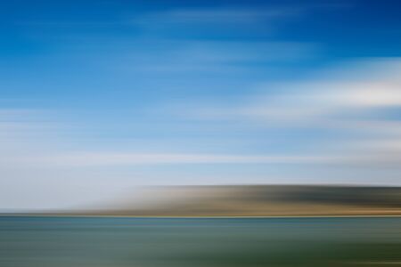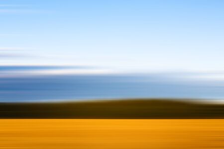 Abstract yellow field and forest with blue sky. Motion blur abstract background with horizontal stripes