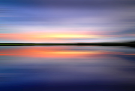 Abstract motion blur background. Beautiful sunset over the lake with reflection in water.