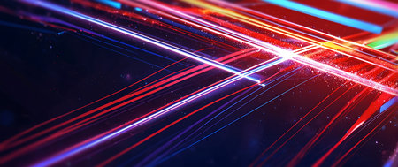 A display of colorful neon light trails crisscrossing against a dark background, evoking a sense of motion and energy. The vibrant streaks of blue, red, and purple lights create a dynamic and futuristic atmosphere.