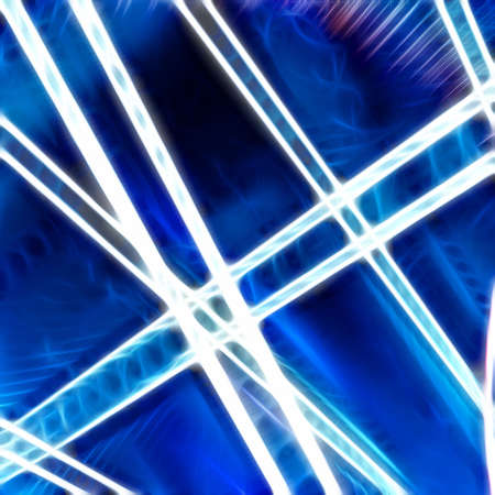 The bright neon light streaks forming an X shape against a dark blue background. The light streaks are vibrant, glowing in shades of blue, white, and purple, creating a dynamic and energetic visual effect. The lines intersect at the center, forming a luminous focal point. The overall composition is abstract and futuristic, evoking a sense of speed and technology.
