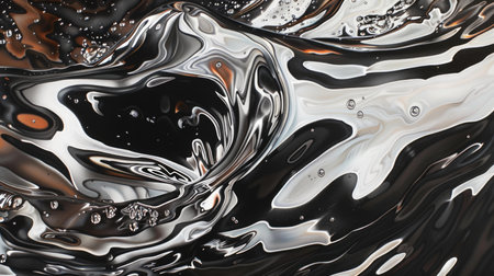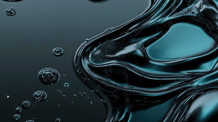 This captivating image features a close-up of a dark liquid surface with mesmerizing bubbles and smooth flowing textures, perfect for artistic or design needs.