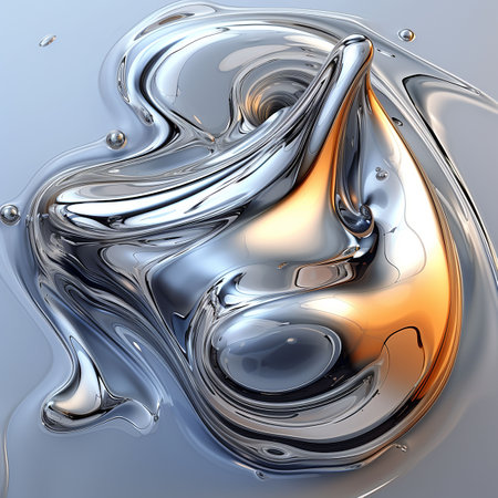 An intricate liquid metal design with smooth swirls and shiny reflections, giving a chic and futuristic vibe