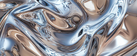 Abstract liquid metal, shiny and fluid, modern texture, copy space