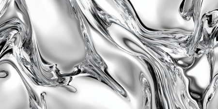 Abstract metallic liquid texture with fluid shapes and smooth gradients in shades of silver