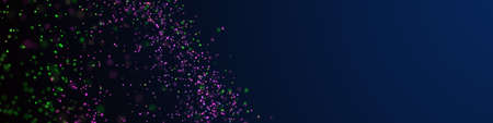 cloud of multicolored particles fly in air slowly or float in liquid like sparkles on dark blue background. Beautiful bokeh light effects with glowing particles for holiday presentations