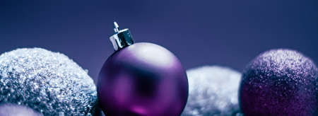 Purple Christmas baubles as festive winter holiday background