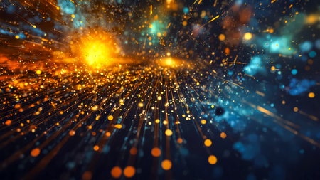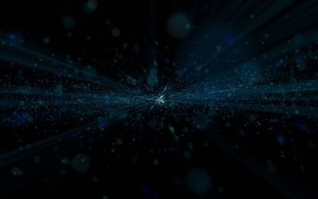 Abstract cosmic background and light rays and particles.