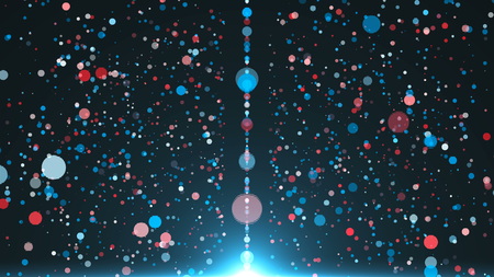 Abstract red and blue beads falling with bokeh effect