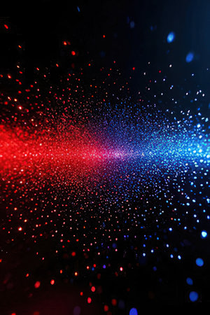abstract background with red and blue glittering particles on black background
