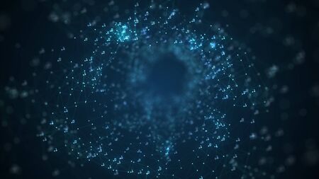 Abstract background with the movement of luminous particles. Digital technology connection concept.