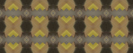 Abstract symmetrical ornamental pattern of yellow, brown and gray. Seamless texture