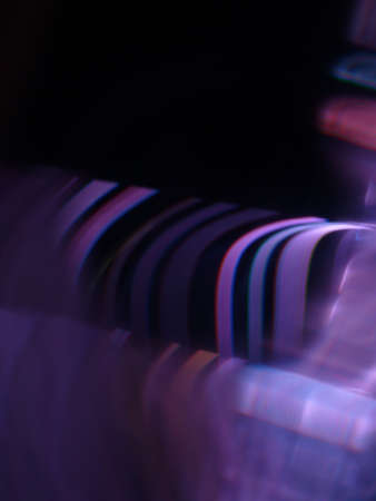 Blue, red, white and purple light painting photography, long exposure, ripples and waves against a black background. Curves and waves of neon green light against a black background.