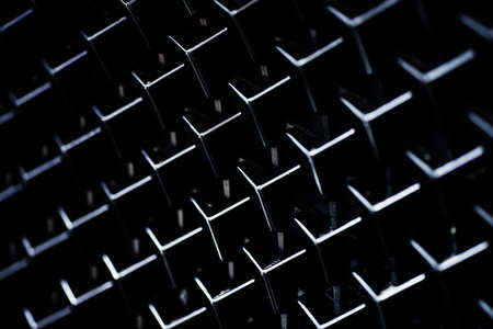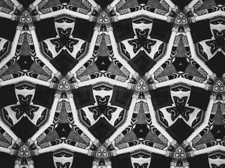 Black and white geometric texture with abstract metal pattern in interior, symmetric architectural steel background.
