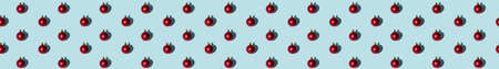 Blue Xmas background. Red ball seamless pattern. Festive polka dot ornament. Winter holidays decorative composition. Round shimmering glitter bauble minimalist design isolated on light.