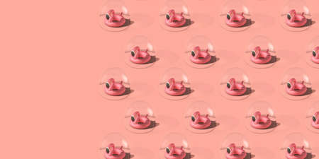 holiday travel bubble. Flamingo in a protective bubble 3D Rendering
